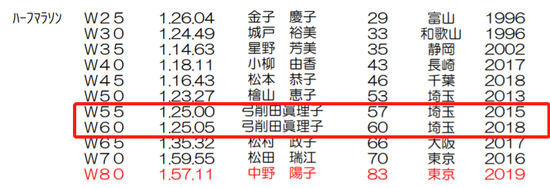 60-64岁年龄组纪录:1:25:05。
