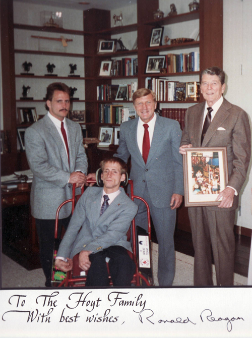 1993年,Rick Hoyt从波士顿大学(Boston University)的特殊教育专业毕业,现在波士顿学院的一个计算机实验室协助研发专门帮助残疾人交流、生活的特殊设备。