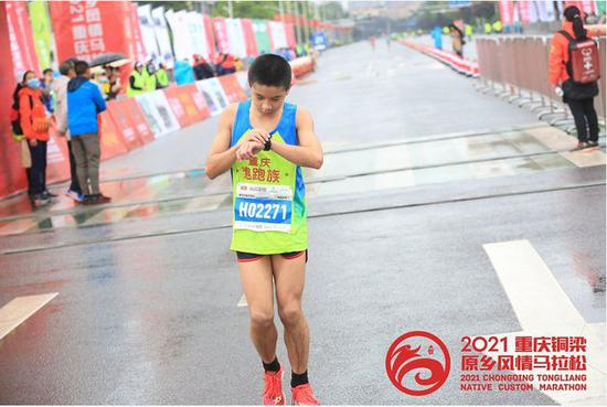 在周日进行的2021重庆铜梁马拉松赛终点,一位脸庞略显稚嫩的男孩冲线,引起观众的注意。据相关报道,这名小男孩年仅15岁,以1小时14分11秒的净成绩完赛半马,还斩获了第15名的好成绩。