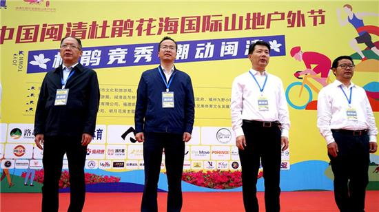 福州市文化和旅游局党组书记、局长翁国平,福州市体育局党组书记刘丹,闽清县委书记陈忠霖,闽清县委常委、县总工会主席黄斌,闽清县人民政府副县长陈婉霞,闽清县文化体育和旅游局局长卢敏,闽清县东桥镇党委书记黄树东,闽清县下祝乡党委书记张朝晖,福州九野小镇投资发展有限公司执行董事林飞鸣等领导和嘉宾出席了开跑仪式。