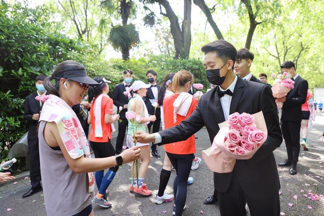此外,组委会还安排了帅气的男模,手持玫瑰,送予每一位完赛的美女跑者,男模们成为了赛后一道靓丽的风景线。女生们最爱的美妆美食环节也得以保留,在确保安全社交距离的情况下,组委会为完赛跑者提供了化妆、美发服务及各式美食,令跑者们流连忘返。终点区域的姓名墙也大受好评,在墙上找到自己的姓名,与自己的名字留下一张合影,为自己的女子半马之旅画上圆满的句号。