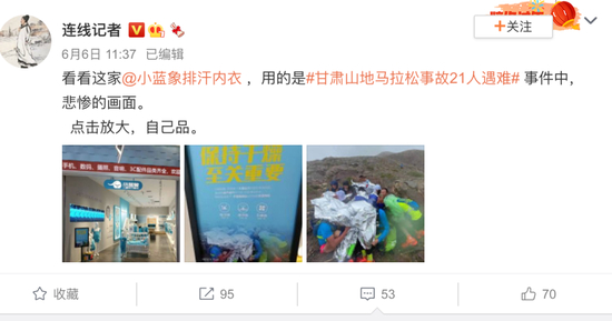 昨天中午,微博用户@连线记者 爆料,某排汗内衣品牌,竟然使用甘肃越野赛选手凄惨的照片做广告,让人大跌眼镜。