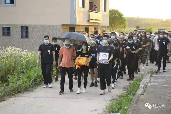 6月5日,送葬队伍走往梁晶家中。图/跑友 城东客