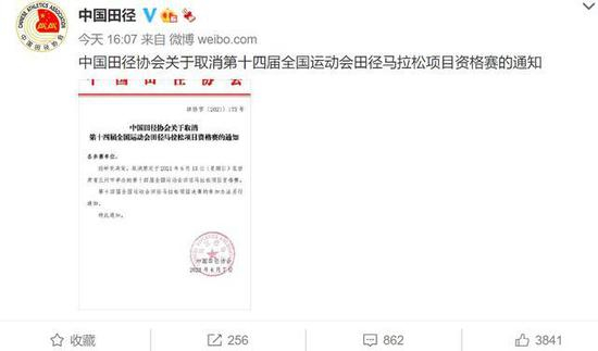 6 月 8 日下午,中国田径协会发布了《关于取消第十四届全国运动会田径马拉松项目资格赛的通知》,该赛事原定于 6 月 13 日在甘肃省兰州市举行。而本届全运会马拉松项目决赛的参加办法,中国田径协会将另行通知,至于为何取消本届全运会马拉松项目资格赛,官方并未作出解释。