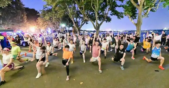 西湖边爱运动的小伙伴越来越多。西湖跑团提供