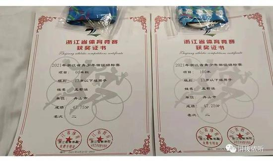 今年4月23日,孟哲涵代表舟山参加2021年浙江省青少年田径锦标赛,总名次获全省第二名。