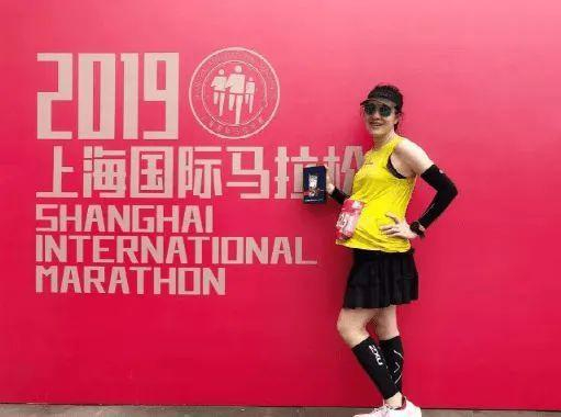 2019年上海马拉松,准妈妈黎莉莉参加完全马比赛,成绩为5小时17分钟