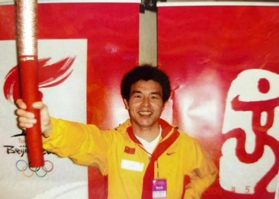 柏剑担任奥运火炬手时的留影。受访者供图