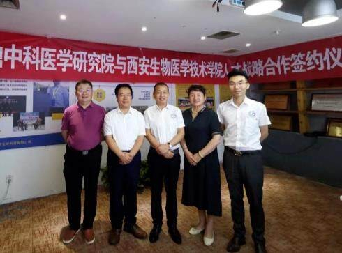 北京国鼎中科医学研究院院长丁道辉、副院长袁小强,西安生物医药技术专修学院理事长、院长刘金田、西安生物医药技术职业学校副校长蒋先友、督学董桂晔副教授,项目投资方视立美视光科技集团董事长余俊毅等出席签约仪式。