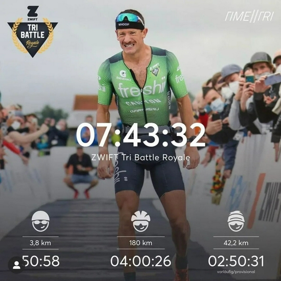 大铁的比赛包括3.8公里游泳,180公里自行车和42.195公里的全马,作为这项运动最杰出的选手,扬-弗洛丹诺在这次对决中更胜一筹,以7小时27分53秒完成比赛,刷新了自己2016年创造的7小时35分39秒的世界纪录。