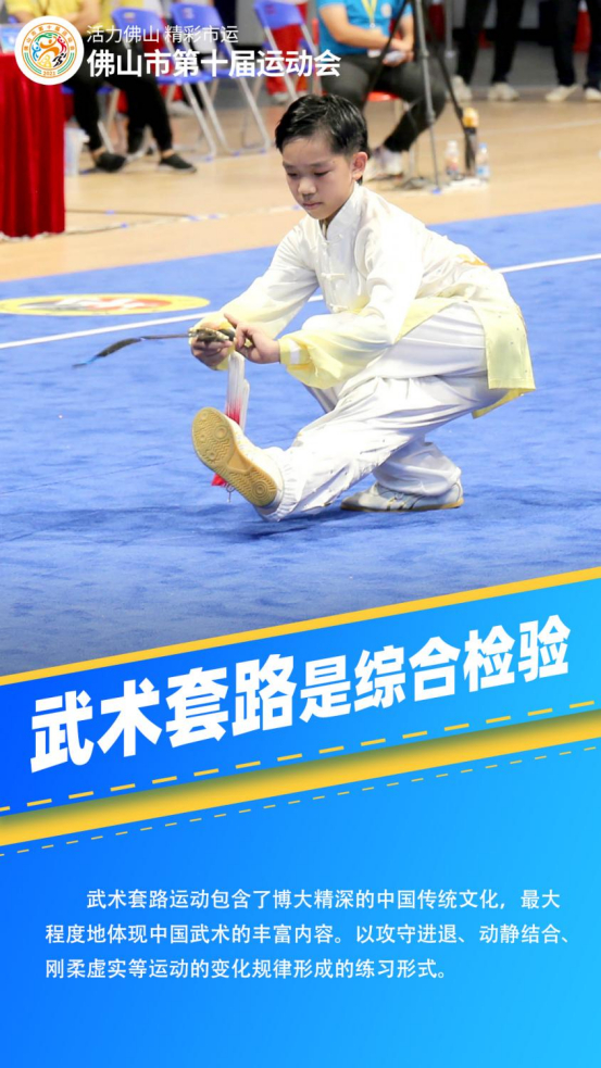 8月4日上午,佛山市第十届运动会武术套路比赛在西樵飞鸿馆开赛,全市148名运动员选手同场竞技。经过2天比拼,顺德区代表队获得团体总分第一、南海区代表队获得团体总分第二、禅城区代表队获得团体总分第三。