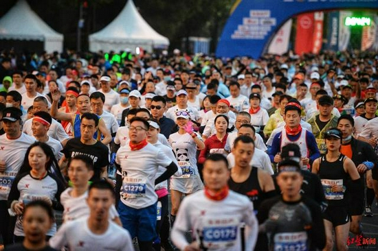 2020年11月29日,2020成都马拉松开跑,参赛跑者从金沙遗址博物馆起点出发 图据极美成都
