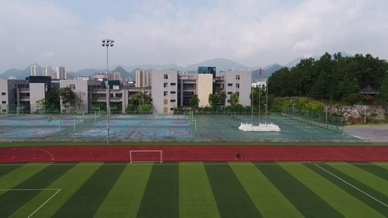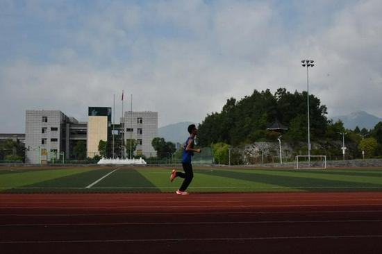 刘辉在务川中学的操场上跑步。(务川县融媒体中心供图)