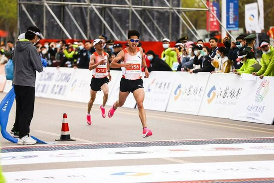 今年4月的奥运会选拔赛杨绍辉获得亚军,拿到奥运门票。资料图/徐州马拉松组委会