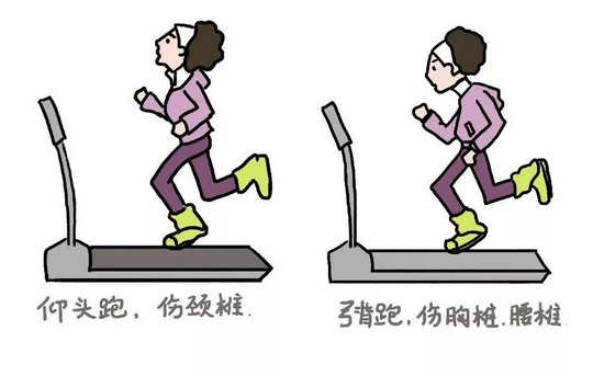 很多健身房为了让运动者不感觉枯燥,在跑步机上方或跑步机上安装了电视,因此很多人跑步时不是仰头就是低头。