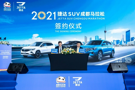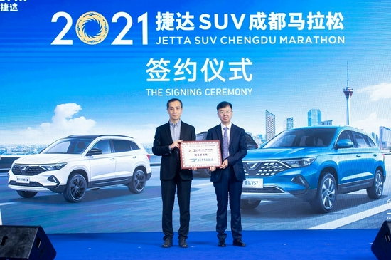 成都马拉松赛事组委会与冠名赞助商一汽-大众捷达品牌签约