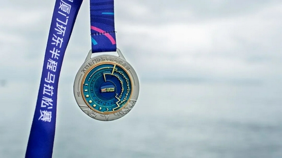 2021厦门环东半程马拉松赛的完赛奖牌选取环东海域浪漫线地标之一‘潮汐公园’为主体元素。