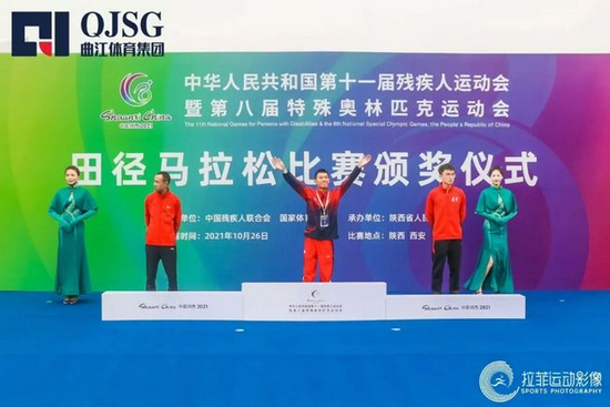 经过两年的卧薪尝胆、潜心备战,成绩突飞猛进,在他的而立之年,在这次西安残运会上以领先第二名接近7分钟的巨大优势,一飞冲天,登顶冠军,实现梦想!