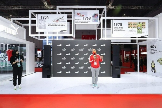 展台上同样作为核心看点之一的还有搭载全新科技的PUMA碳板竞速跑鞋FAST-R NITRO ELITE。在准备进博会的过程中,PUMA争取到了这双鞋的全球首次亮相,希望在进博会这一影响力巨大的舞台上,溯源跑步DNA,为中国消费者展现PUMA将在2022年上市的顶级跑鞋科技。PUMA还以中国古代礼乐器 -- 石编磐为设计灵感,360°向观众展示FAST-R。PUMA在跑步上不仅拥有卓越的历史成就,未来还将会和更多中国本土赛事、运动员进行深度合作,助力中国跑步迸发无限潜能。