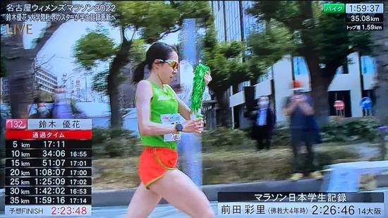 这次比赛中,铃木优花前30公里速度保持的不错,在跑完35公里时,预计的完赛时间还能到2小时23分。由于没有进行过马拉松项目的训练,缺乏长距离跑步经验,铃木优花在35-40km的速度放缓至17分50秒,后面掉速较多,最终以2小时25分完赛。