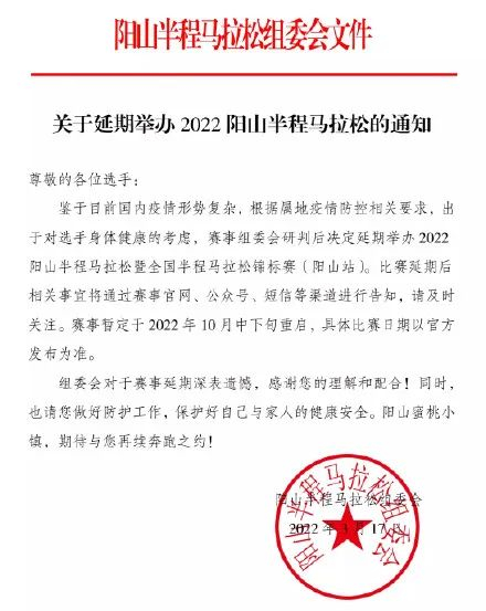 上半年的赛事纷纷在延期,都会延期到什么时候呢?阳山半马的延期公告给出了答案,上半年似乎已经不太适合举办比赛,阳山半马初步暂定延期到10月中下旬,这也是目前最为保险的方案。