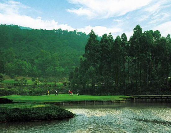 十八条球道在形态各异的山坡、湖边、林中伸延,使每一个洞的击球策略都充满了挑战性。球手们在这里尽情挥杆,大显身手,豪情逸志溢满碧野蓝天。球场的设计为所有尊贵的会员和嘉宾提供了一个极富挑战性和娱乐性的击球体验。深藏于亚热带森林的球场出自名师设计,人与自然的完美结合,给人以妙近自然、淡而天成的审美情趣。设计灵感来自这南国山水的灵秀,因势富型,巧妙布局,每个球道果岭造型各异,每一次击球都能让人感受到自然所蕴含的静谧和灵动的生命意趣。
