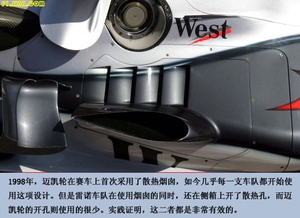 在过去的几年中,新材料的应用让引擎的安全运转温度提高了100~125摄氏度,这意味着冷却的难度降低了一些,但是现在F1在处理冷却问题上仍没有得到致臻完善的程度,特别是在冷却气流的出口处。