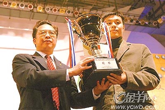 上图:羊城晚报报业集团总编辑张宇航(左)为许银川颁发冠军奖杯