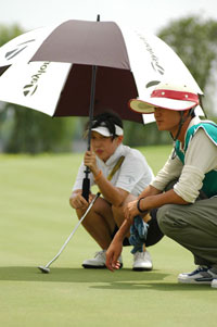 “这个球场的果岭速度很快,又很难看懂线抓好”,古国燕说,她觉得这是业巡赛里比较难的果岭。虽然前9洞记分卡上一片平稳。但实则不然,前4洞她ON果岭率不高,都是切上去,一推救帕。到了第8洞,一个2码多的小鸟机会她没有抓到。