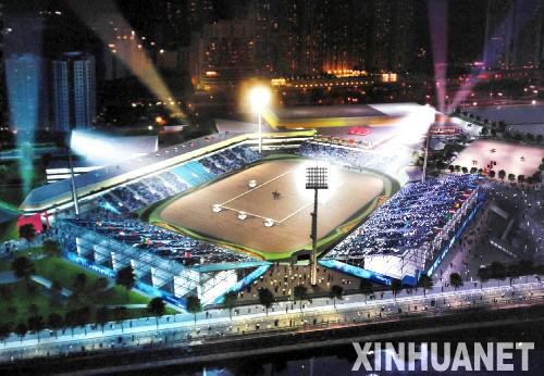7月7日,香港赛马会宣布,为北京2008年奥运会马术项目建设的赛场及训练设施竣工,并交付测试。图为奥运马术赛场的夜晚效果图 新华社记者卢炳辉摄