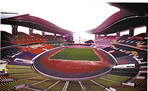 奥体中心位于天河东圃镇,是广东省政府为承办2001年九运会而投资16.7亿元人民币兴建的现代化综合性体育场馆。中心占地100多万平方米,目前已建成有80000个座位的奥林匹克体育场、马术场、射箭场、棒球场、垒球场、曲棍球场及其他辅助场馆。体育场的设计由美国NEB与华工建筑设计研究院共同完成,是广州市标志性建筑之一。