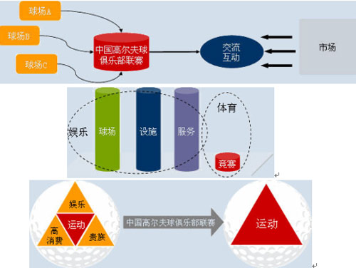 俱乐部通过参加与组织CGCL的各级赛事,将能够建立规范科学的训练体系,提高俱乐部竞技水平,从而进一步明确高尔夫的体育赛事属性。强化高尔夫球俱乐部健身、竞赛、培训等经营活动,这对于公众的认知、俱乐部的发展和市场的开拓都有着重要意义。对于每年需要经过中高协审批的在中国举办的各类大型高尔夫球赛事,如欧巡赛、亚巡赛、中巡赛等,中高协将要加强赛事球场选择的严格性,把竞赛水平例为一个重要的考察标准。