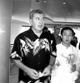 紧接着,中国男篮的队员们也开始陆续出现在酒店大厅,孙悦的紧身黑衬衣让他看上去有点像《黑客帝国》里面的尼奥,酷劲十足;身着长袖竖条纹衬衫的易建联则更显俊朗;主帅尤纳斯穿上了一件很有中国特色的短袖衬衫,上面还有一些竹叶,不过他的表情倒真看不出来是参加婚礼的,一脸严肃。手拿礼品盒的王治郅是最后一个出现在酒店大厅的男篮队员。和其他人不同,大郅公开了他的礼物:“我送给姚明一个小型的武士雕塑,希望在2008年奥运会上,姚明像这个武士一样勇猛。”据悉,大郅送给姚明的雕塑是意大利Vilca水晶雕塑,在全世界,只有纽约、香港、伦敦、东京四个城市的顶级画廊才有出售,而从礼物包装上的香港字样来看,这份大礼很可能来自香港。