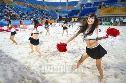 除了DJ之外,沙滩宝贝和沙滩男孩也是本次测试赛的一大亮点。每到比赛间隙,总有一群穿着火辣的美少女随着第八套广播体操的音乐步入场内,除了热辣的劲舞之外,更有极具民族风情的新疆舞等上演,非常吸引人眼球。据悉,共有四支“奥运宝贝”拉拉队在本次挑战赛上参加表演,此前,宝贝们已经在沙滩排球赛场培训了20多天。