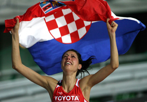 无上荣耀!世锦赛的前8日里,克罗地亚代表团无一枚奖牌入帐,但是瓦拉西奇在收官之日的女子跳高的比赛中却为自己的祖国收获了一枚宝贵的金牌,也许是夺冠所带来的荣誉感过于令人激动,也许是多日来对于金牌的渴望过于迫切,瓦拉西奇在将国旗披在身上的那一刻所迸发出的泪花比金牌更为夺目。