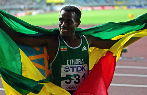 绿色翅膀!来自埃塞俄比亚的万米之王贝克勒在世锦赛中无缘的获得了最后的冠军,牢牢的捍卫了自己在这一项目上他人难以企及的地位。而当夺冠之后,贝克勒像往常一样身披祖国的国旗绕场接受祝福时,万米王臂上的旗帜却仿佛一双翅膀一样,令他如虎添翼。