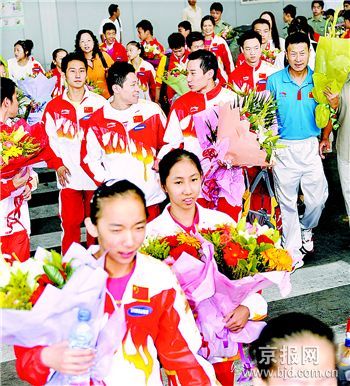 中国体操队载誉归来 黄玉斌:三环节有利08奥运备战