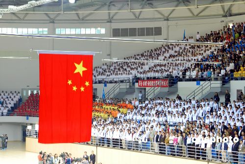 9月30日上午,位于北京工业大学的“奥运羽毛球馆”正式竣工。羽毛球馆占地面积约6.6万平方米,总建筑面积2.4万平方米,坐席约为7500个,主要包括比赛馆和热身馆两部分,它将承担2008年北京奥运会羽毛球、艺术体操比赛项目。中新社发 杨一飞 摄