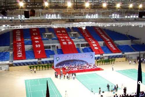 “好运北京”二00七年国际羽毛球邀请赛主办地——北京工业大学奥林匹克体育馆,是二00八年北京奥运会羽毛球比赛场馆。来自中国、德国、马来西亚、奥地利和保加利亚等地的一百一十九名运动员报名参加“好运北京”二00七年国际羽毛球邀请赛,为明年的奥运会“热身”。