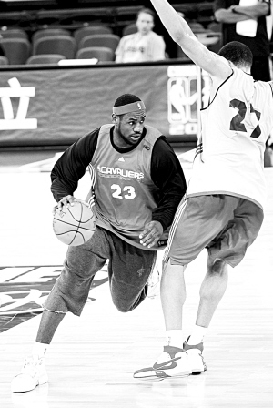 晃着宽阔的双肩,嚼着口香糖,一坐在板凳上就专心致志地咬着手指头……勒布朗·詹姆斯是位篮球天才,有着惊人的表演欲,但同时,他还是一个大孩子,有着孩子般的童心和笑容。