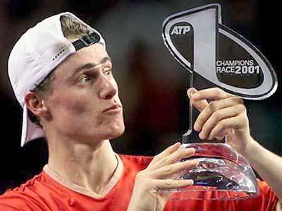 北京时间2001年11月18日 澳大利亚悉尼 大师杯网球赛决赛,澳洲野兔休伊特击败法国选手格罗斯让,获得本届大师赛冠军。同时成为世界排名第一的男子网球选手,20岁的他也是有史以来最年轻的男单年终第一选手。