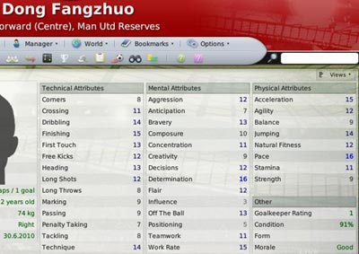 与特维斯、鲁尼以及萨哈这些人比起来,董方卓的能力显然还差的远,但是看看他的各项数据,实际上也具备了一名优秀反击型前锋的雏形,对于速度型前锋来说,最重要的无疑是速度、技术、盘带和得分能力,而董方卓在这几项关键数据上都相当不错,速度(16)和爆发力(15)出众,射门(15)和技术(14)保证了得分能力,盘带(14)也属于良好水平,而相对来说,预判和冷静方面还存在一定差距,如果能够获得更多的比赛时间,现在22岁的董方卓完全可以成为一名在英超小有名气的前锋。