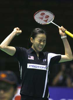 即使有中国羽毛球队总教练李永波罕见地亲自下场地指导,女单世界排名第一的谢杏芳还是在昨天的中国公开赛决赛中以1比2倒在了“超级黑马”、马来西亚选手黄妙珠的拍下。至此,黄妙珠已在本次比赛中连克4位中国女将,此外她还战胜了代表法国参赛的皮红艳。她的夺冠,打破了国羽女单12年来在中国赛的垄断地位。赛前目标只是进入八强的黄妙珠一路突破重围,最终破茧化蝶,成为国羽女单08夺冠的最重要对手之一。