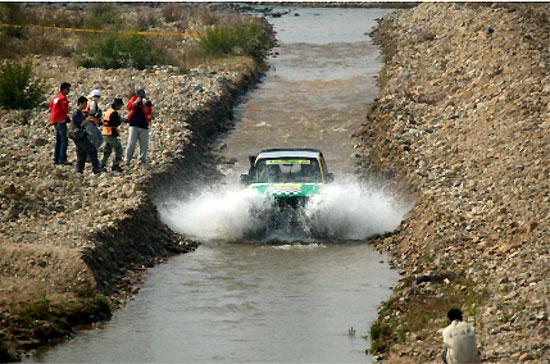 面对深浅不一、暗藏玄机的河道,车手们都小心翼翼,在积分榜上优势明显的刘斌今天充当起开路先锋的角色,未能进入今天的三甲,但是跟在他之后出发的车手却受益颇大,频创佳绩。最后,江苏硬派徐莹以9分24秒获得全场第一,东方大峡谷周继红和长丰扬子车队的廖岷驾驶着柴油车勇夺全场二三名,赛道中的小卵石都飞溅起来,引来了观众的阵阵喝彩。