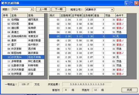 在胜负彩7079期中,威廉希尔给出精准数据,12场双选全中。