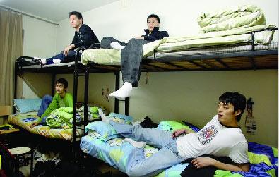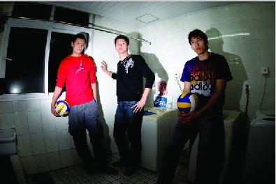 拍摄这一组主题为“男生宿舍”的照片,很让一向创意点子不断的小冯伤了一番脑筋。尽管事前对男生宿舍的环境面貌很有心理准备,但一踏进男排住的单元,还是犹豫了一下——要找下脚的地方呢。