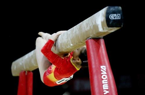 3月18日,2007年体操世界杯巴黎站资格赛,中国选手范晔在比赛中掉下平衡木。