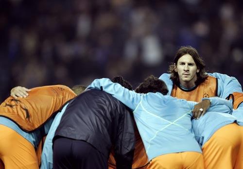 10月24日,2007-2008赛季欧洲冠军联赛,客场作战的巴塞罗那优势占尽,却最终收获一场0比0的平局。11月8日回到主场巴萨以2比0击败对手提前小组出线。画面中是客战流浪者的那场比赛,梅西与队友在训练中。