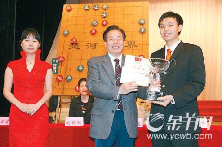 图:广东省政协副主席、中国象棋协会副主席蔡东士为许银川颁奖本报记者 林桂炎 摄