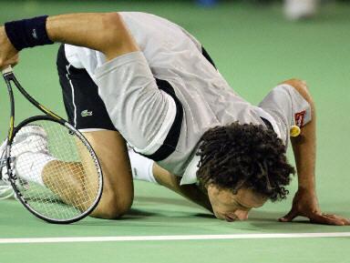 2005年澳网半决赛,萨芬在获胜后“安慰”费德勒